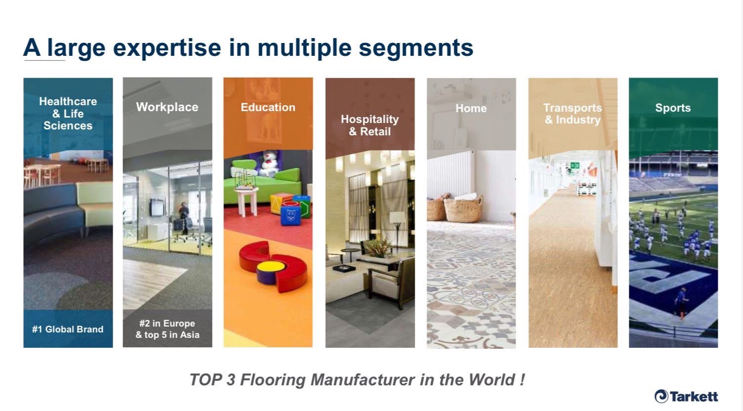 Tarkett 精品地毯、LVT 產品 瑞晏 Swiss Yan 代理 Tarkett 品牌,該公司擁有超過百年的歷史。 Tarkett 是世界第一品牌,全球領先的創新地毯、地材解決方案供應商之一,擁有35個工業生產基地,靈活地應對各地區客戶的需求和市場趨勢。 簡介