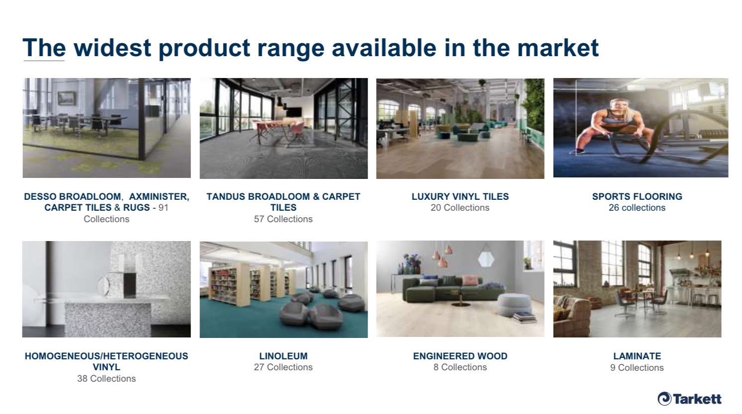 Tarkett 精品地毯、LVT 產品 瑞晏 Swiss Yan 代理 Tarkett 品牌,該公司擁有超過百年的歷史。 Tarkett 是世界第一品牌,全球領先的創新地毯、地材解決方案供應商之一,擁有35個工業生產基地,靈活地應對各地區客戶的需求和市場趨勢。 簡介